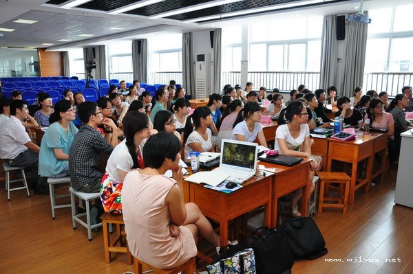 培训前,全体语文老师自带笔记本、智能手机和平板电脑,以便更好与戴晓娥院长进行互动学习。培训中,戴院长首先从语文学科的培养目标、性质和数字化的环境三方面组织全体语文老师展开小组讨论,并将各组讨论结果通过笔记本电脑及时呈现,让参训的老师感受到移动互联时代泛载学习的重要意义。戴院长巧妙地以交互式的学习方式为突破口,让老师们真切感受到自媒体时代数字化学习的有效作用。紧接着,戴院长从数字化学习的价值取向、语文学科思想的把握、关注数字化环境下语文教学创新、关注数字化环境下语文学习资源和数字化环境下听说读写新思考几大方面阐述了数字化教学对语文学科的影响,结合学科领域的特性戴院长采集了大量课堂实录让全体语文老师感受到数字化教学这一头脑风暴,激发了全体教师的教学热情,为学校数字化环境下语文学科建设提供了学习平台。
