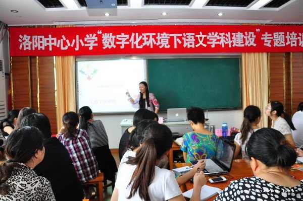 数字化的飞速发展和教育信息化,给当前语文教学带来了巨大的冲击。为进一步提升学校语文信息化教学水平,充分发挥信息化教学设施与资源效益,促进教学质量的提高,实现学校校名师战略。9月24日下午1:30,洛阳中心小学三区四楼阶梯教室举行数字化环境下语文学科建设专题培训会。培训由学校信息处殷立新主任主持,常州教育科学院副院长戴晓娥参会并作现场培训。全校65位语文老师、信息处分管校长端敏明参加此次培训会。