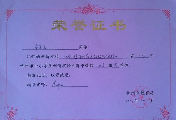 为深入推进素质教育,强化青少年创新意识和实践能力的培养,11月6日,常州市举办了中小学生创新实验大赛。在本次比赛中,洛阳中心小学科技创新社团发挥聪明才智,一举斩获了本届创新大赛优秀组织奖,两位参赛同学分获比赛一等奖。