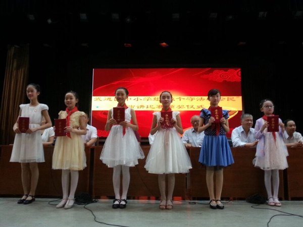 为贯彻党的十八届四中全会“依法治国”精神,营造学法、知法、守法的良好氛围,推动学校教育的健康发展,铸造活力、开放、和谐、平安的环境,7月7日上午,由武进区关工委、教育局等单位联合举办的武进区“老少共筑中国梦”系列实践活动之“做个守法小公民”演讲比赛在常州幼儿师范学校隆重举行。洛阳中心小学五2中队队员倪玉婷参加了本次比赛。