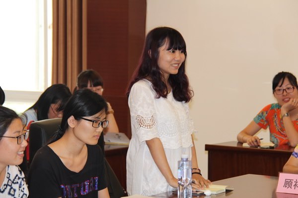 资深老班主任顾祥娟老师首先向青年教师作《班级管理与家长沟通》的讲座。顾老师从如何解决学生不做作业的问题、如何与家长进行有效沟通和班主任的常规工作三方面向老师们介绍了自己的一些有效做法和宝贵经验。顾老师的介绍详尽又具有针对性,她的介绍赢得了青年教师的掌声。