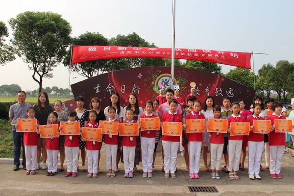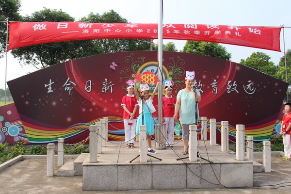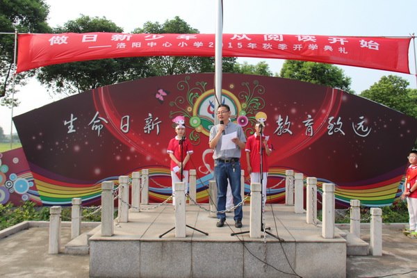 新的学期,同学们牢记校训;日新致远,同学们扬帆起航。开学典礼上,学校张永方副校长传递日新阳光,激励同学们做求真、向善、尚美的洛小日新好少年。自洛小开展日新星级中队评比以来,学校各中队涌现出一大批星级班集体。戴鸿副校长代表学校行政表彰了上学期被评为“日新星级中队”的班级,邵小武校长、戴鸿副校长为获奖班级颁发了奖状并合影留念。而后,学生家长与孩子一起上台分享了她们的阅读故事,学校图书管理员也向大家介绍了图书馆的作用并为孩子们送上了读书名言。赠人玫瑰手留余香,赠人书籍书香芬芳,在大家期盼的目光里,学校邵校长给大家送上了一份最美好的开学礼物——书籍,各学区的学生代表也上台领取了这份新学期里的精神食粮。故事、名言、书籍让孩子们爱上了阅读,更喜欢上了洛小这个飘满书香的大家庭。