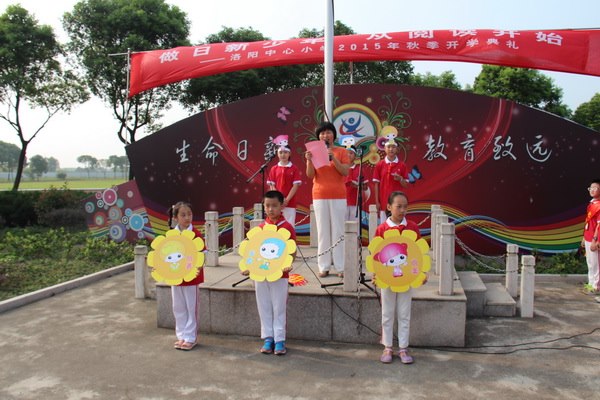 在热烈的掌声中,校长邵小武作新学期致辞。他代表学校174位教师对全体一年级新同学表示热烈欢迎,对二到六年级的老同学、老朋友也同样表示热烈欢迎。邵校长希望同学们时刻把“日新致远”的校训与“生命日新,教育致远”的办学理念记在心灵深处,努力成为具有厚实人文素养、创新科学智能、继承优良传统,体现文明素质的日新少年。从“做日新少年,从阅读开始”的主题入手,邵校长根据犹太民族因热爱阅读创造了许多世界第一阐述了阅读的重要性。讲话最后邵校长说,书是成长的阶梯、是最好的食粮、是最好的朋友,也是最好的钥匙,他号召同学们热爱阅读,在学校3400多名学生中开展一次持久热烈的阅读大比赛,从而涌现出一大批爱读书、会读书、乐读书的日新好儿童好少年。
