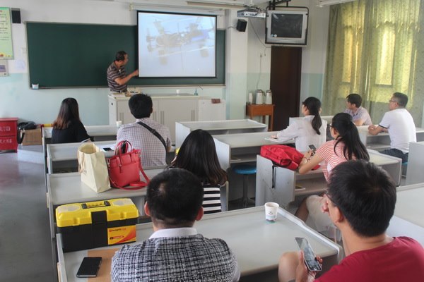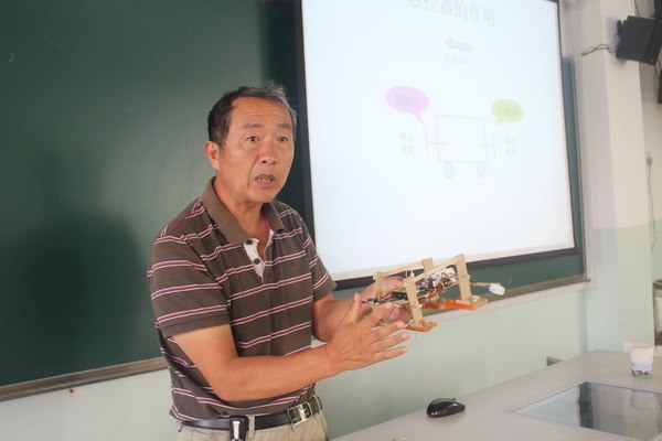 在培训班上,万老师利用一上午的时间详细介绍了“powertech”仿生机器人龙猫巴士、万兽之王、机器战鼠等五个基础包的制作过程,讲述了比赛的具体要求和规则,并和在场的辅导员们观看了仿生机器人成品的精彩表演。下午,万老师和陈老师亲自动手为辅导员们现场制件了机械战鼠和虫虫危机这两个机器人,学员们也跟着老师们动手制作,有问题就请教老师,现场氛围浓烈,对老师和学员们的精神倍感敬佩。