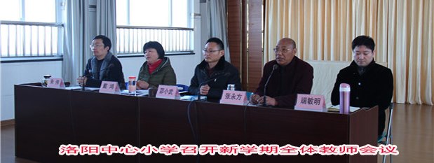 寒假的快乐还在心头萦绕,新学期已缓缓向我们走来。2月10日上午8:30,洛阳中心小学新学期全体教师会议在学校二区四楼阶梯教室举行。会议由张永方副校长主持,学校邵小武校长作讲话,张永方、戴鸿、端敏明和朱伟四位副校长分别就新学期教育教学、后勤、德育、体育及卫生工作进行部署。
