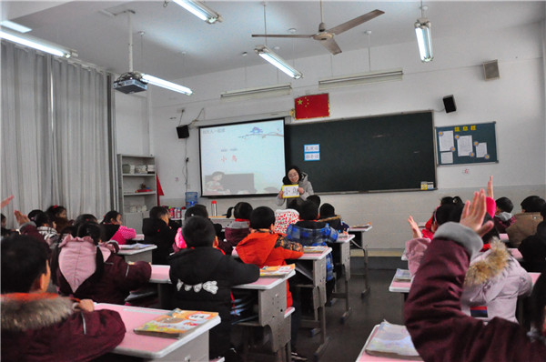 一年级的黄蓉老师执教了《小鸟念书》,本篇课文是属于“和大人一起读”栏目,黄老师通过多种方式的朗读来提高学生读书的兴趣,获得和大人一起读书的方法。黄老师的课堂教学媒体多样化,上课伊始就利用视频来吸引学生的注意力,调动课堂氛围。在教学关键语句时,特地设计了一些小游戏,让学生在游戏中理解文意。由手机连接蓝牙音响,让学生在课堂中实时听到自己的朗读声音也让学生感受到阅读的乐趣。二年级陈静老师执教的《风娃娃》让听课老师收获颇多。陈老师选用了不带拼音的文章,对低年级的学生来说是个不小的挑战。陈老师在课堂中让学生学会用多种方法识记生字,引导学生把故事读正确并理清脉络,还教学了读课文可以默读的新本领。