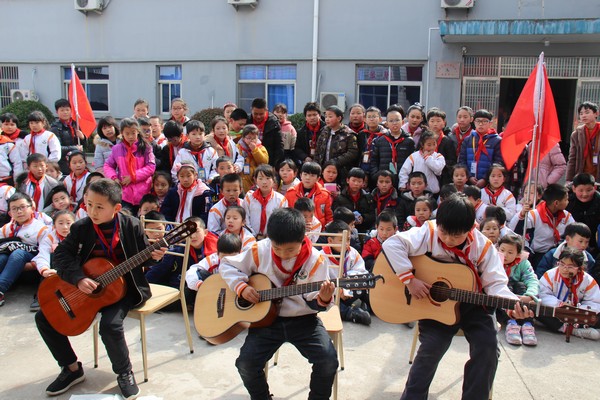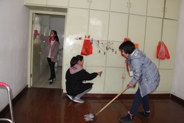 在大队辅导员朱丽英老师及四个中队辅导员的带领下,队员们高举队旗,带着扫把等劳动工具、吉他等乐器以及水果点心等慰问品,一路步行,到达了敬老院。队员们跟爷爷奶奶打过招呼,送上了水果和点心,还给奶奶们献上了自己精心制作的“三八”祝福贺卡。接着,大家拿起劳动工具,开始擦窗户、扫地、拖地、擦洗健身器材等,把敬老院打扫得干干净净。队员们还为老人们带来了精彩纷呈的表演,动听的笛子合奏,潇洒的吉他弹唱,帅气的街舞,柔美的拉丁舞,孩子们热情的表演和温馨的祝福,赢得了老人们热烈的掌声,为他们带来了快乐。表演结束后,辅导员和队员们还与老人们合影留念,孩子们和爷爷奶奶们都笑得像花儿一样。