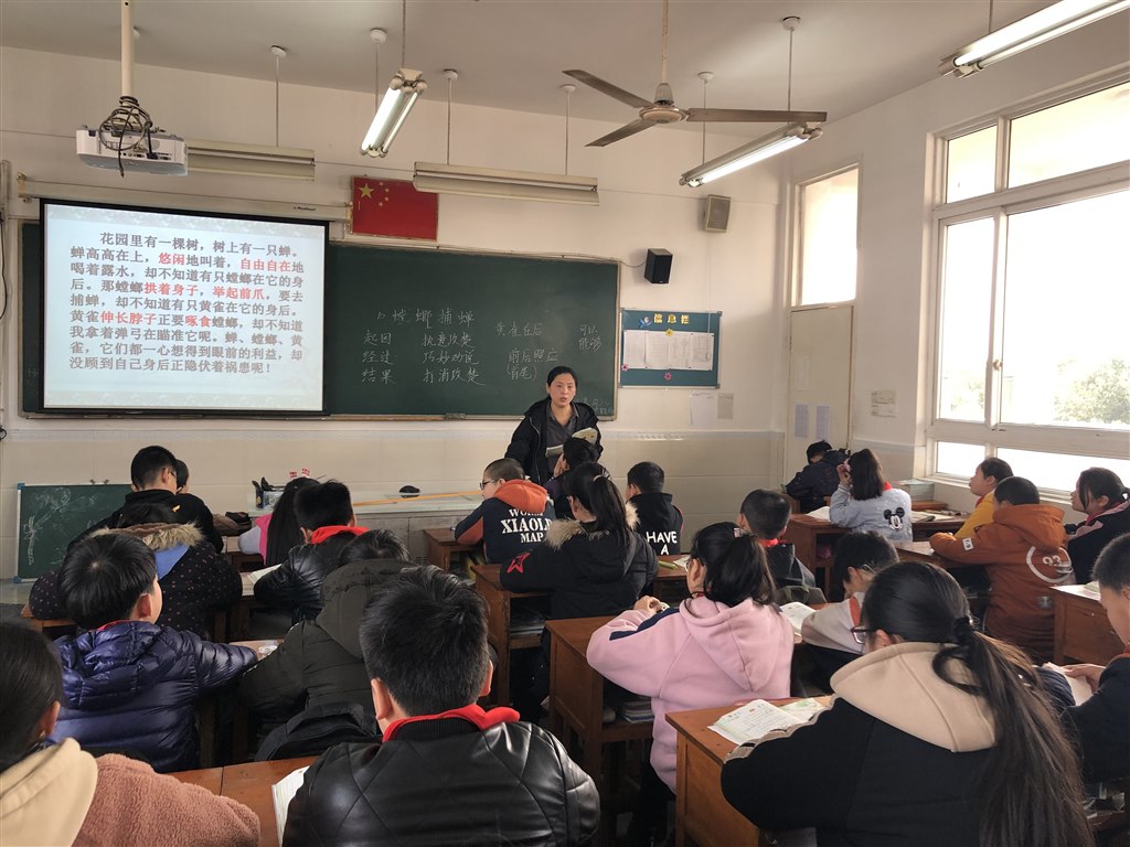 根据学科组教研活动计划,3月20日上午,洛阳中心小学六年级语文学科组紧紧围绕“聚焦文本表达,提升阅读能力”这一主题,六年级全体语文老师齐聚六(8)班,聆听了马亚芬老师执教的《螳螂捕蝉》第一课时,并进行了研讨。