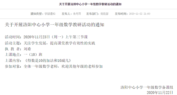 2020年11月24日低学部一年级数学组按计划开展教研活动,刘希老师执教《得数是10的加法和10减几》,学科组的每一位老师围绕主题“关注学生发展,提高课堂教学有效性的实践”进行了研讨。