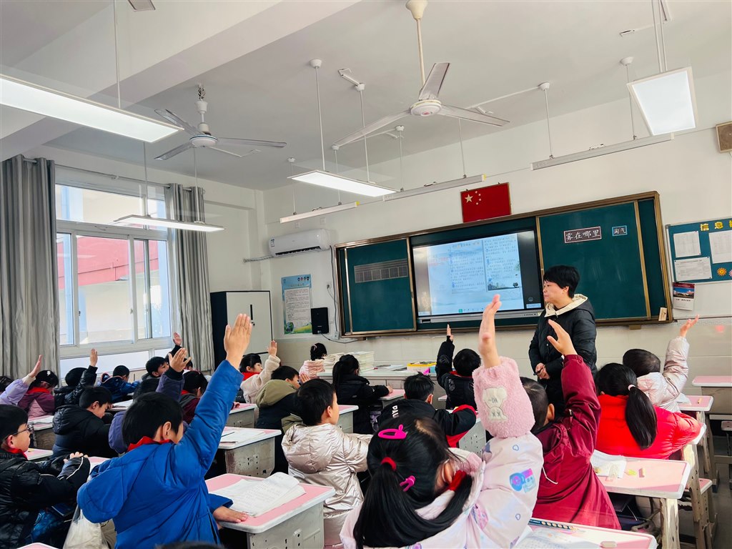 在识字环节,王薇老师将生字词与课文情境相结合,通过朗读、模仿等方式,帮助学生们轻松掌握了生字词。随后,她带领学生们深入研读经典段落,引导他们抓住雾说话时的语气特点,体会作者笔下的情感表达。在王薇老师的指导下,学生们积极参与课堂讨论,踊跃发言,课堂氛围十分活跃。
