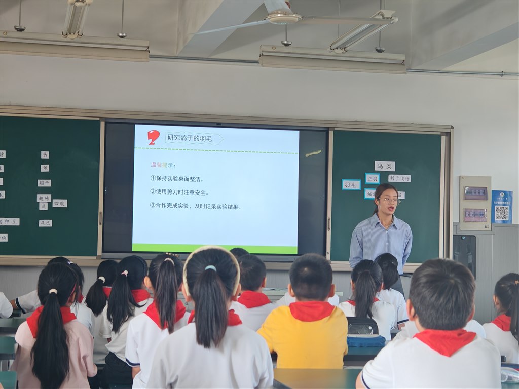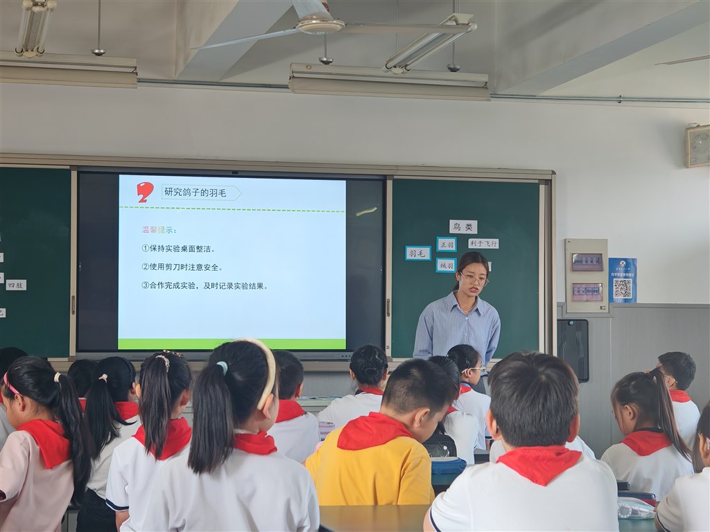 为促进学校科学教学研究,提升课堂教学实践能力,9月17日,洛阳中心小学科学学科组围绕“新课标理念下小学科学教学中学生科学素养的培养”这一主题,齐聚实验室2,聆听了詹琪美老师执教的《鸟类》。
