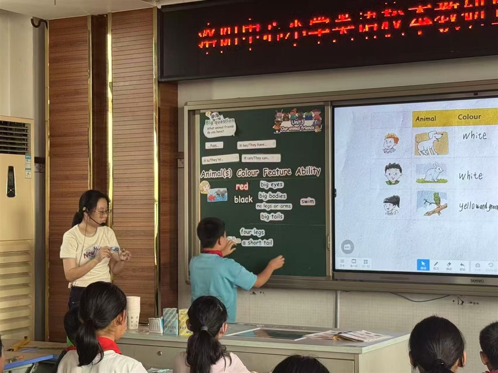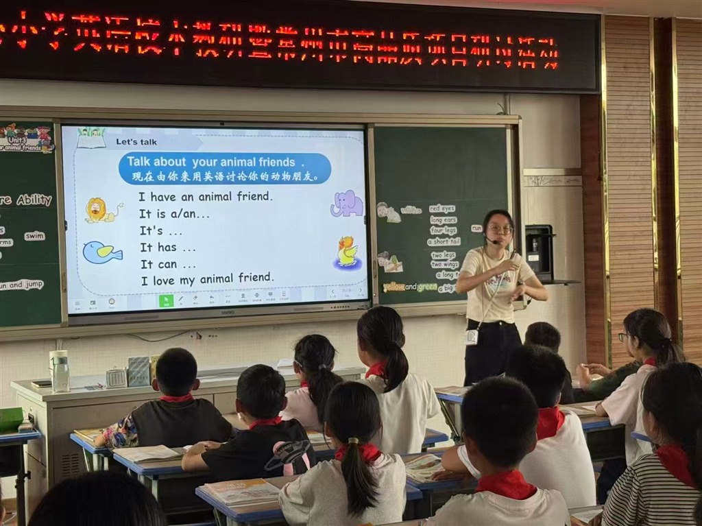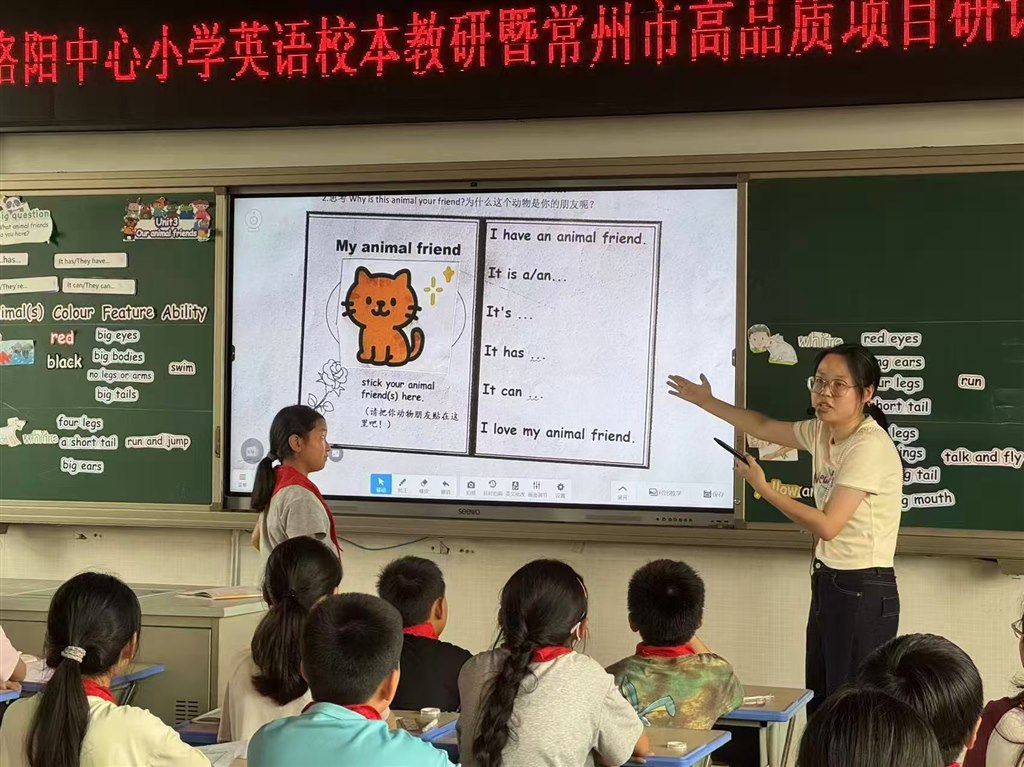 为进一步推进我校常州市高品质项目《核心素养理念下致远课堂的实践探索》的实践研究,积极践行“双新”理念下致远课堂探索,提升教师的课堂教学实践能力,9月25日,洛阳中心小学开展了校本教研暨常州市高品质项目研讨活动。我们特邀了清英外国语学校胡佳慧校长莅临指导,和洛阳中心小学英语老师们一起齐聚阶梯教室,观摩并学习了上官颖老师执教的五年级上册Unit3 Our animal friends第一课时。