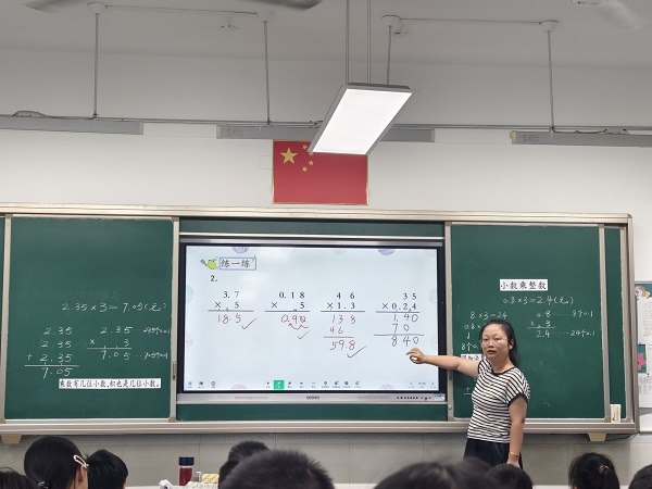 为深化课堂教学研究,提升数学教学质量,10月16日,五年级数学备课组所有老师齐聚五年级(8)班,聆听了李倩老师带来的一堂精彩的课《小数乘整数》。
