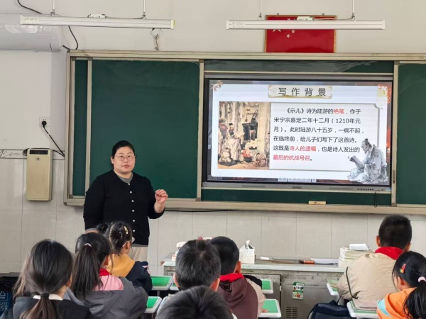 10月23日,洛阳中心小学“具身认知下小学古诗词以情动心的策略研究”课题组全体成员齐聚五(12)班,共同聆听潘姣老师带来的公开课《示儿》,共同探讨将“具身认识”理念融入教学,让学生在沉浸式体验中触摸陆游的爱国情怀。