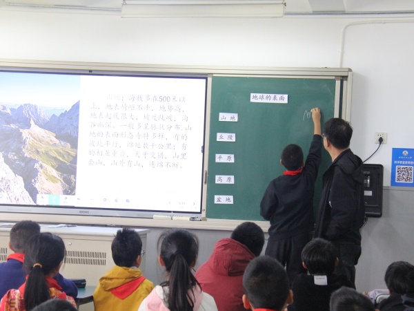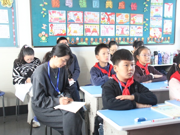 督导专家深入一线,走进课堂随堂听课,近距离观察“致远课堂”实践成效。六年级李玲霞老师执教《伯牙鼓琴》。李老师以文言文《伯牙鼓琴》为载体,开展了一场沉浸式语文教学活动,带领学生走进“高山流水遇知音”的千年故事。结合AI音频介绍伯牙学琴经历,学生进一步读懂了琴声中“高山般挺拔的志向”与“流水般包容的情操”,理解了“言志”与“明志”的深层关联,“知音”的内涵也在此过程中逐渐清晰。三年级费珊老师带来《间隔排列》。课上,费老师以串珠游戏引入,引导学生发现规律;通过设计作品、小组讨论,总结出间隔排列两种情况的数量规律,并借“一一对应”释因。随后,男女生排队游戏与填数练习深化认知,还结合生活场景让学生找间隔排列现象,生动落实知识教学。五年级万钧老师执教《地球的表面》。万钧老师以航天员太空拍摄的地球视频切入,蓝色星球上的陆地与海洋瞬间吸引了学生目光。“地球是什么样的?”这一问题点燃了学生的探究热情,在“球形、蓝色、有陆地海洋”的回答中,自然引出“地球的表面”这一课题,巧妙搭建起生活经验与科学知识的桥梁。充分激发学生的科学探究兴趣,落实“探究地球表面奥秘”的科学素养目标。