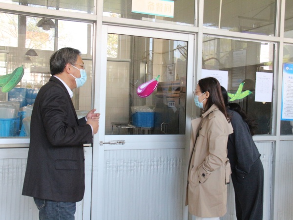督导专家率先开展校园实地查看,重点关注门卫安保、食堂管理等。在门卫室,专家仔细检查安保人员值守记录、访客登记流程及安防设备配备,确认校园入口安全管理规范有序;走进食堂,从食材储存、工具摆放、卫生清洁到台账记录,专家逐一细致核查。
