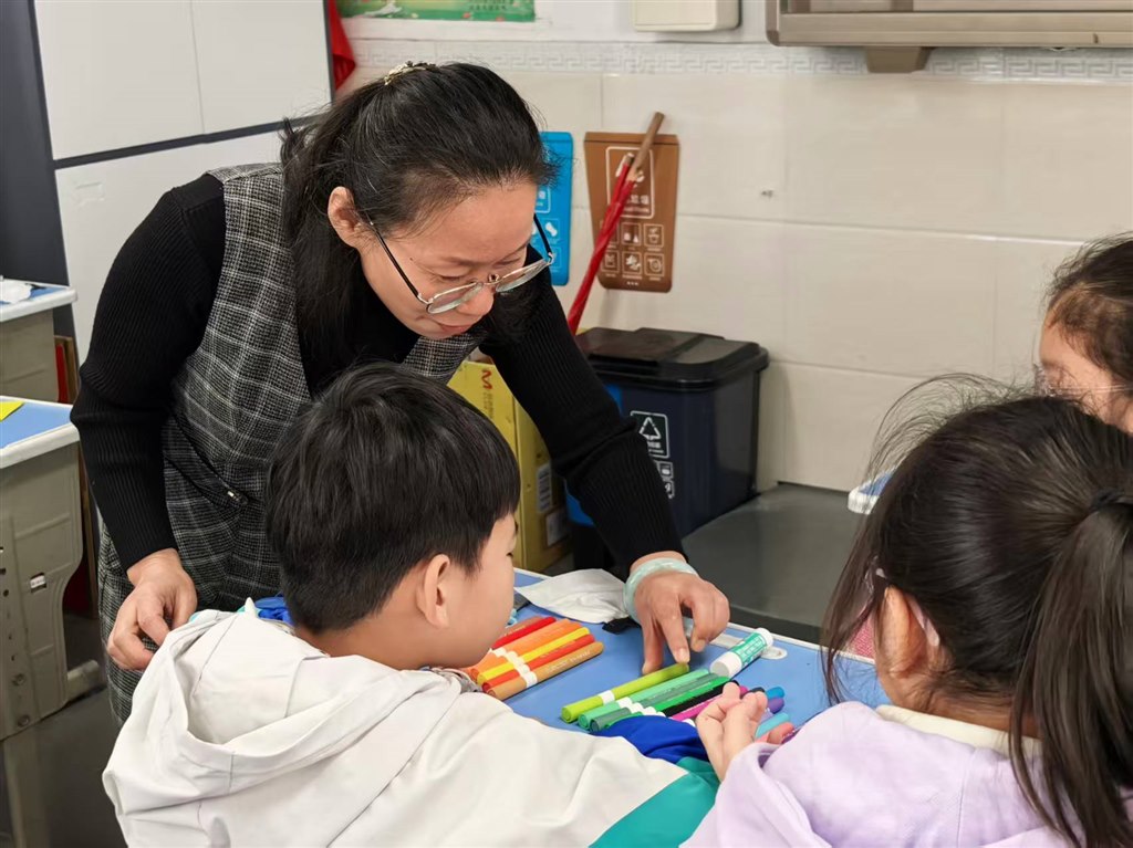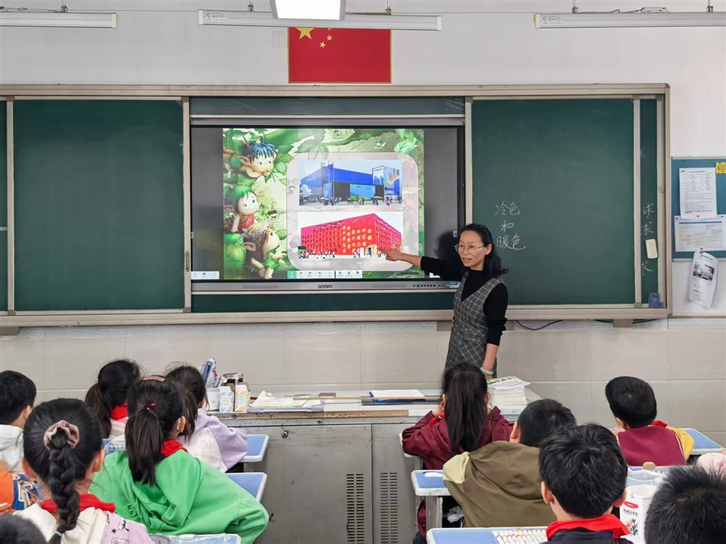 本次教研活动中,张云老师以教研组“植物染非遗跨学科教学”课题为依托,对《冷色和暖色》一课进行了创新设计。课堂伊始,教师从学生熟悉的三原色、三间色知识导入,自然揭示“冷色和暖色”课题。在“认识冷暖色”环节,张老师不仅讲解红橙黄等暖色、蓝绿紫等冷色的视觉感受,还引入植物染料知识,让学生了解茜草、红花可提取暖色染料,靛蓝、蓼蓝能提取冷色染料,将色彩理论与植物染非遗文化初步关联。