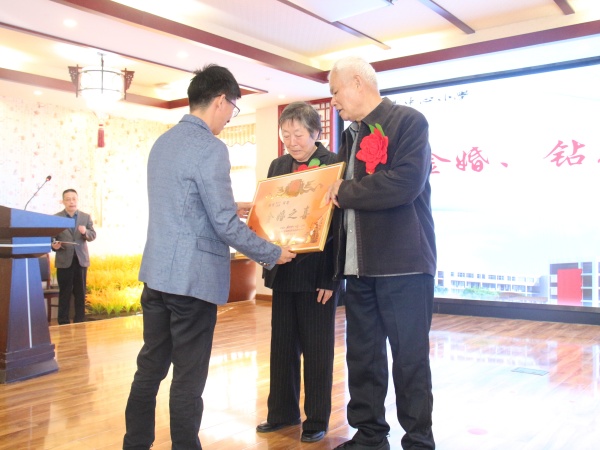 此外,雷上志副校长还宣读了金婚、钻石婚的名单,为两对携手共度风雨的教师夫妻颁发了纪念镜框。他们的爱情故事,如同璀璨的钻石,闪耀着忠贞与美好光芒,成为现场所有人心中佳话。