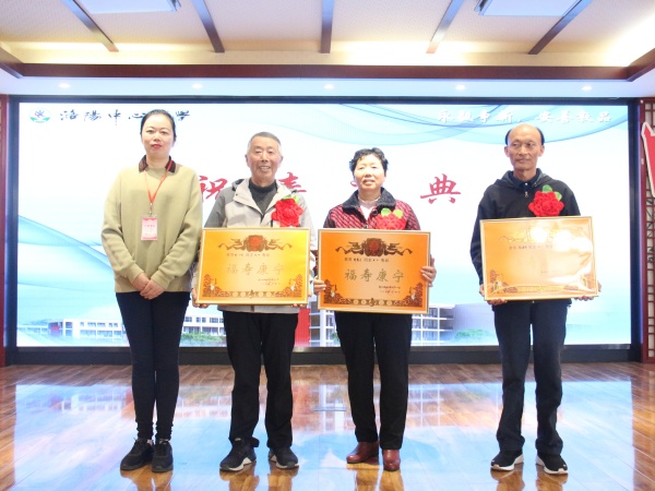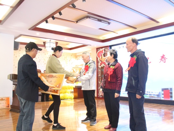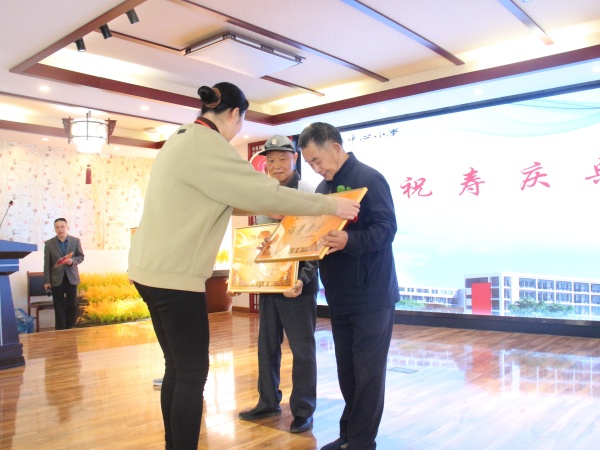 活动的高潮部分莫过于为老年教师祝寿的环节。党支部副书记、副校长朱轶倩宣读了寿星名单,共有11位教师接受了学校精心准备的寿匾。寿星们佩戴着鲜艳红花,脸上洋溢着幸福笑容,现场掌声雷动,气氛达到高潮。