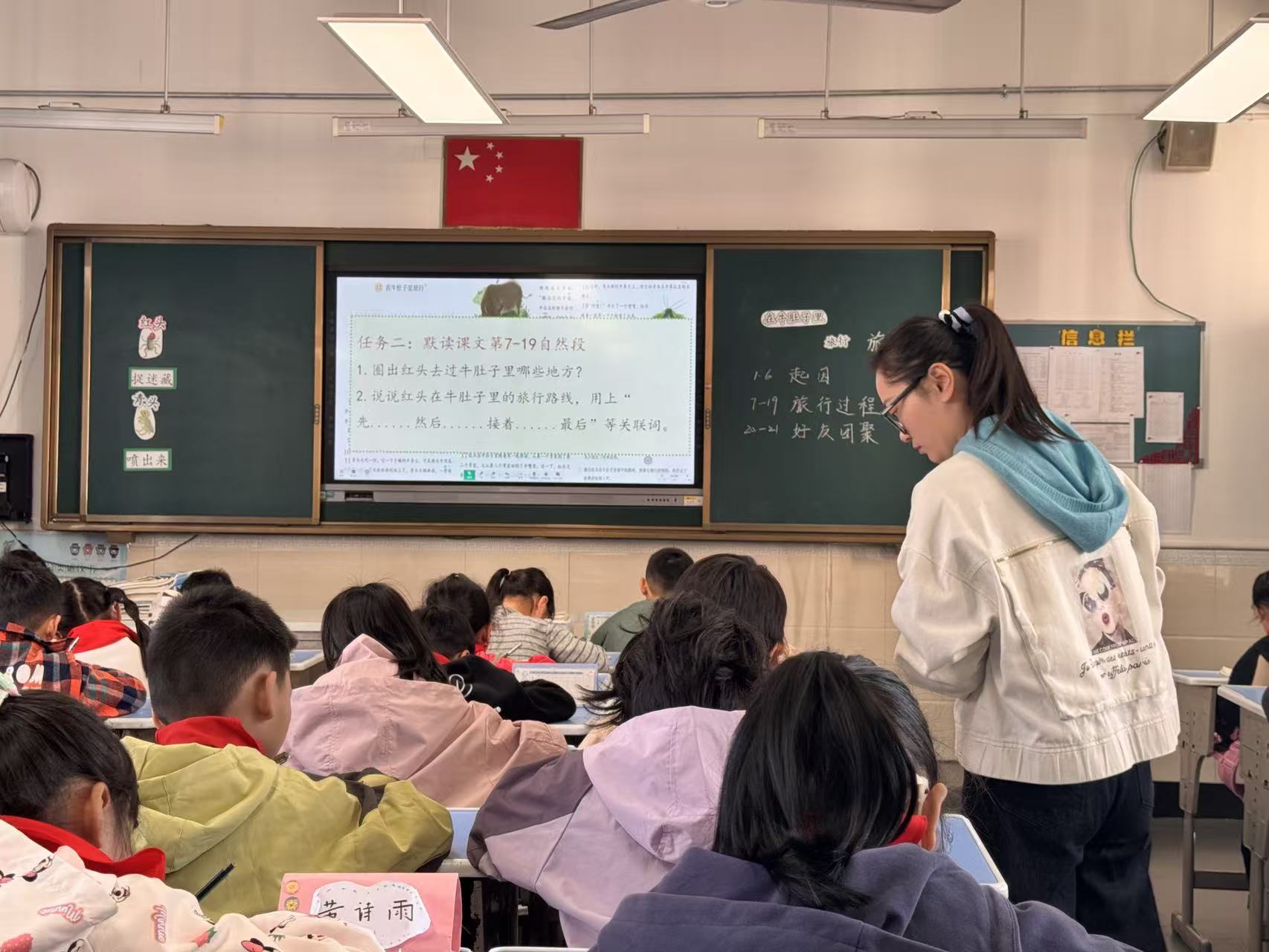 挖掘 “牛反刍” 科学知识时,王老师先播放反刍视频,再抛出想象任务。通过想象,学生不仅理解了 “科学知识融入童话” 的特点,更让抽象的知识变得生动可感。