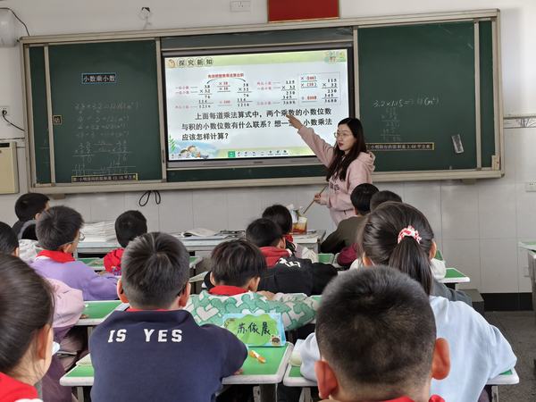 上课伊始,秦老师在黑板上呈现两道小数乘整数的计算题:“1.6×2.4”“6.15×12”,请学生上台板演竖式。在学生计算过程中,秦老师引导全班回顾:“我们是怎么把小数乘整数转化为整数乘法的?”当学生说出“把乘数扩大成整数,算出积后再缩小相应的倍数”时,秦老师顺势追问:“如果两个乘数都是小数,比如‘3.8×3.2’,又该怎么算呢?”这一提问自然将学生的思维从“小数乘整数”迁移到“小数乘小数”的新探究中,为整节课的“转化”主线埋下伏笔。