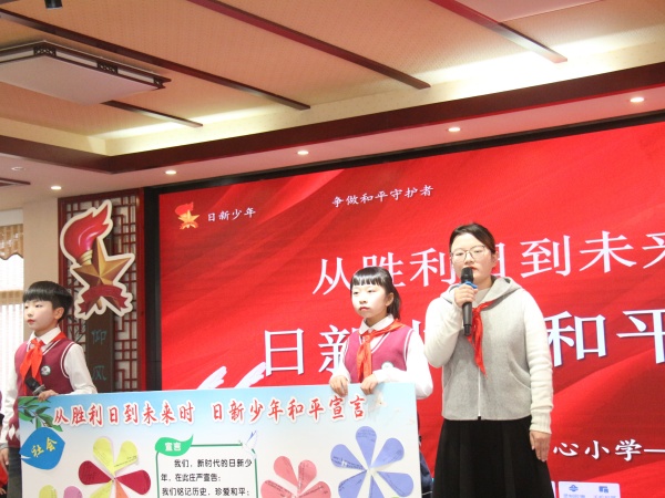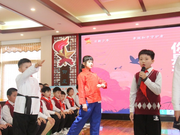 四(8)中队上了一堂《从胜利日到未来时:日新少年和平宣言》队课,这是一堂生动鲜活的思政课。活动以“回望胜利日—品悟今日和—共创未来时”为逻辑脉络,逐步深化主题。回望篇,队员们通过影片竞猜、抗战文物分享、情景朗诵《你是谁》及寻访家乡抗战印记,深刻体悟抗战精神,明确英雄的故居、纪念碑等不是一个个景点,而是一处处学习抗战精神的思政课堂;品悟篇,队员们在震撼人心的九三阅兵回顾和最触动人心瞬间分享中,感受到大国力量,是我们守护和平的底气,队员们还讨论了自己心中的和平模样;共创篇,队员们写下自己日常的和平微行动,贴上和平墙,汇聚成“和平之花”,以铿锵誓言立下守护和平、创造未来的承诺。