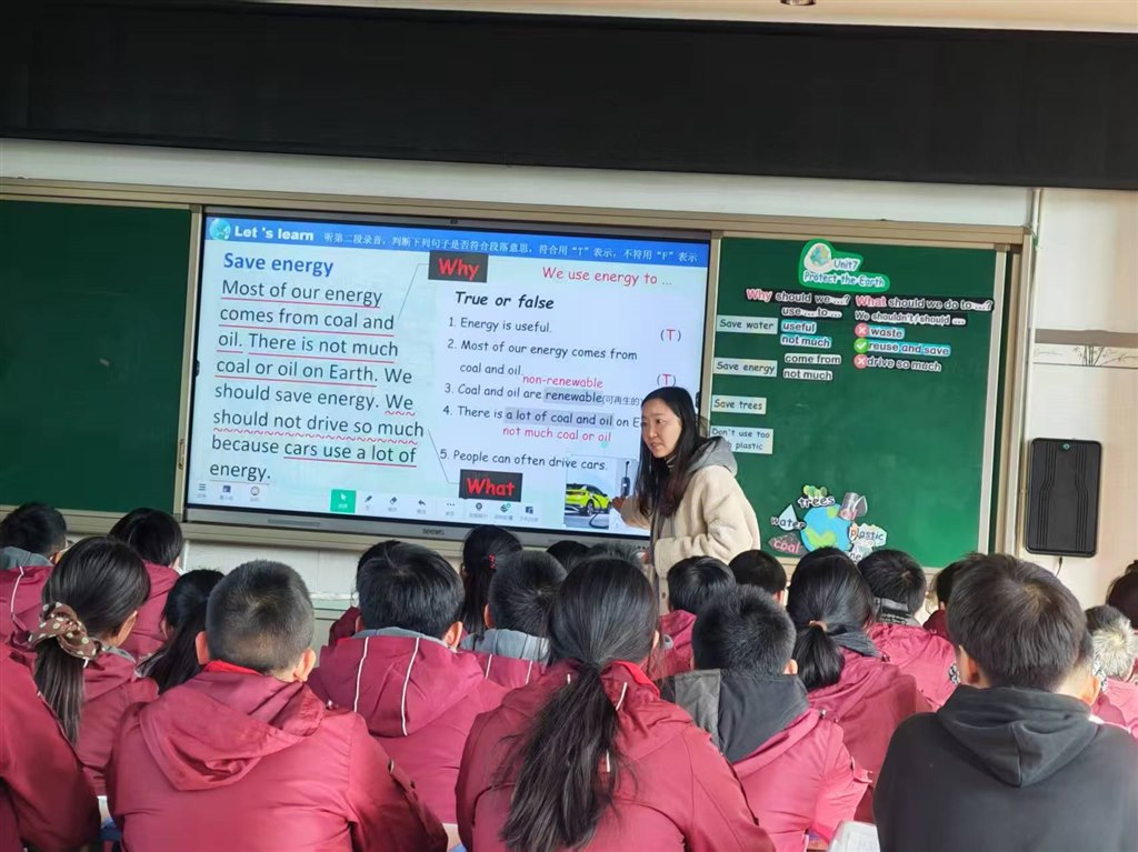 金老师的课堂围绕“保护地球”这一主题,引导学生关注环境问题,深化社会责任感,是单元主题的延续与拓展。课堂伊始,金老师通过播放地球过去与现在对比的短视频,直观、震撼地引出单元话题“Protect the Earth”。随即通过提问“What’s on the Earth?”激活学生已有认知,自然过渡到课文学习。