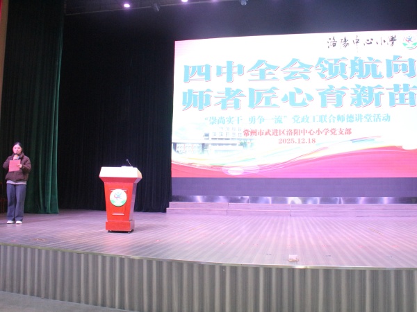 2025年12月18日下午,武进区洛阳中心小学以“四中全会领航向,师者匠心育新苗”为主题,隆重举行“师德讲堂”活动暨全体教师会议。学校全体教职工参加了此次会议。