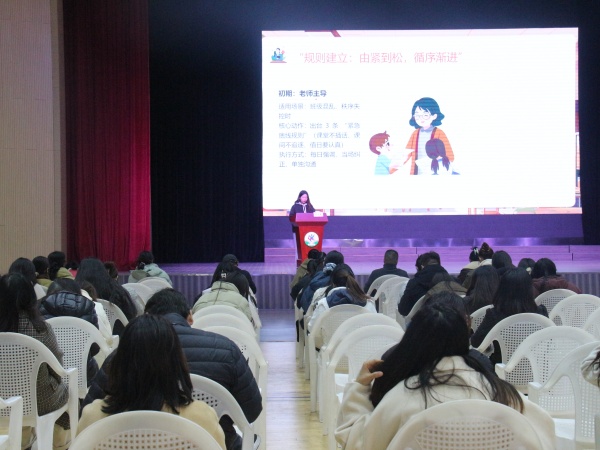 会议伊始,两场精彩的师德宣讲率先拉开帷幕,第一位宣讲人是李朦老师,她以《以规则为基,育有序班级,铸育人初心》为题,分享了自己在班级管理中的实践经验和深刻感悟。李老师通过具体案例,阐述了如何通过立规则、顺个性、聚合力,将纪律涣散的班级转变为和谐有序的集体。她强调,规则不是约束,而是保护,通过由紧到松的过程,让学生从被动服从变为主动认同,最终内化为自觉行动。