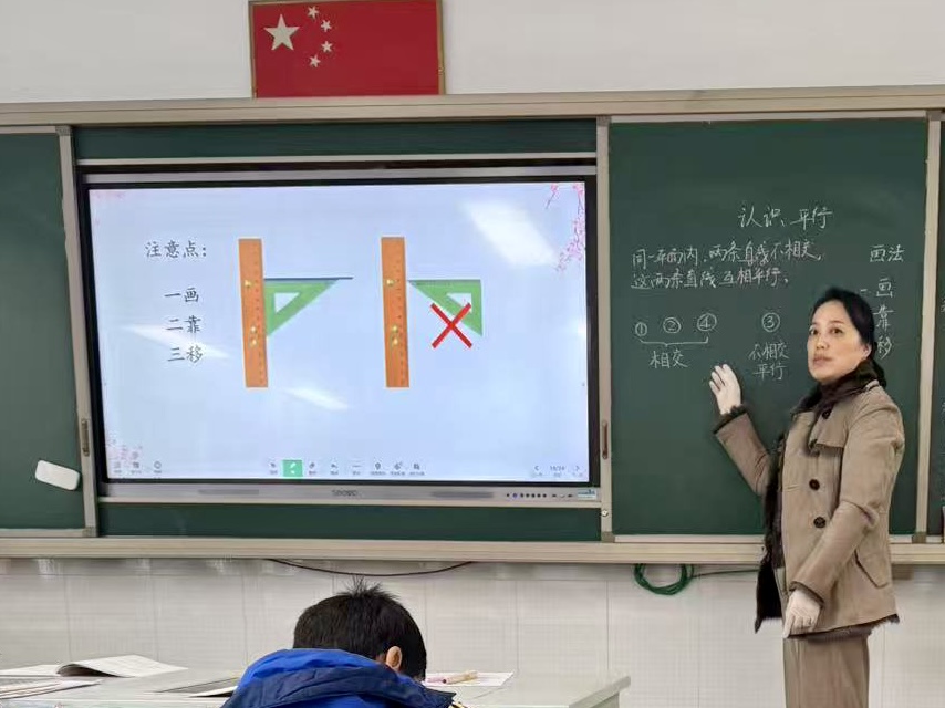 为深化新课标理念下的课堂教学改革,以“核心问题”撬动学生数学深度学习,落实空间观念、抽象思维等数学核心素养,12月23日,洛阳中心小学四年级数学教研组围绕“让数学核心问题为深度学习导航”主题,开展了《认识平行》课例研讨活动。四年级全体数学教师参与活动,共同探索核心问题驱动下的数学课堂新路径。