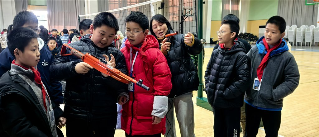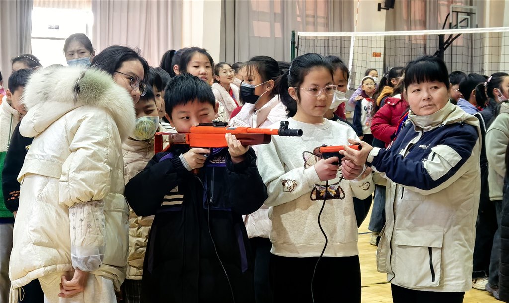 最受学生欢迎的是校内“模拟射击比赛”。比赛按班级分批次有序进行,四五年级的同学依次登场竞技。赛场上同学们认真瞄准、规范操作,在竞技中体会国防训练的严谨,同时也增强了团队协作意识。