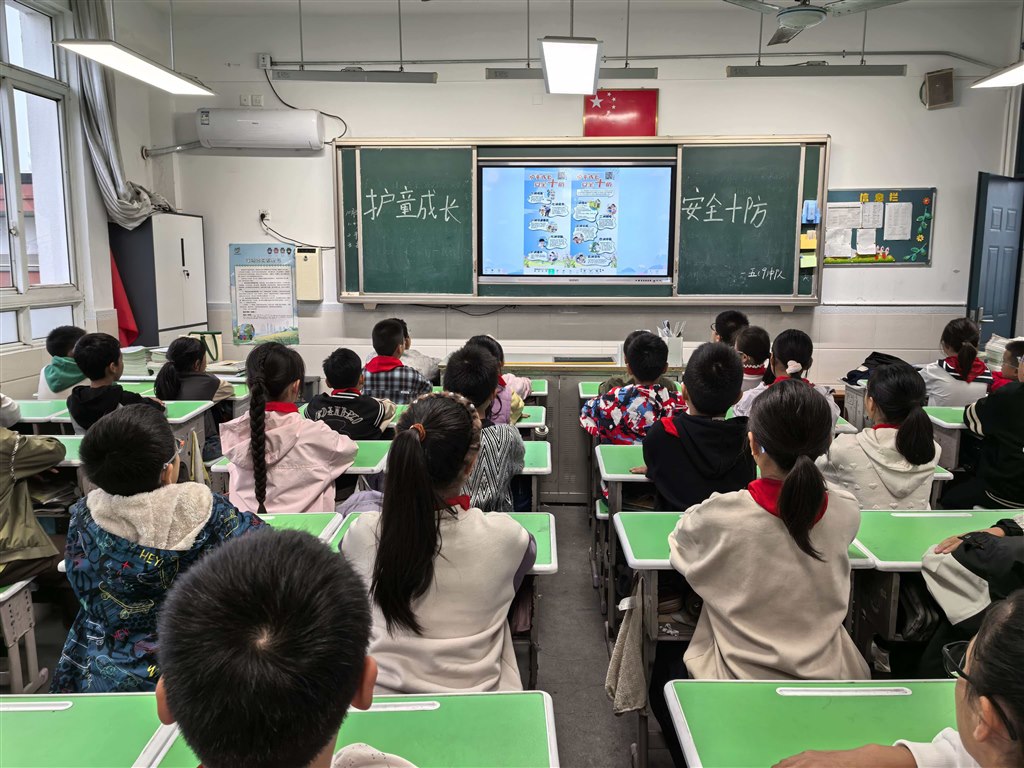 五(9)中队开展以《护童成长,安全十防》为主题的安全教育活动。