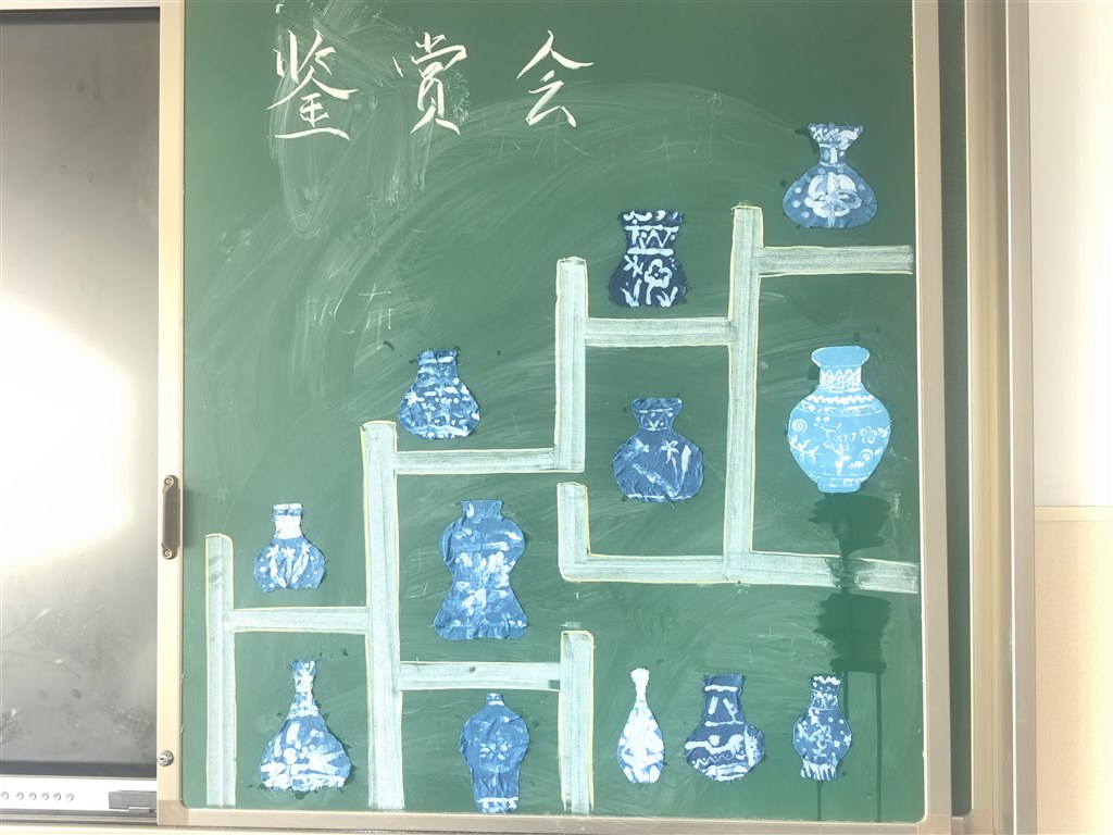 作品展示环节,学生们踊跃分享自己的设计思路,蓝白相间的蜡染作品各具创意,有的复刻了青花瓷的缠枝莲纹,有的融合了葫芦瓶的对称造型,尽显童真与巧思。许老师对学生的作品逐一点评,既肯定了大家的创意,也借由作品进一步阐释蜡染与青花瓷的美学关联,让学生在成果展示中深化对非遗文化的理解。