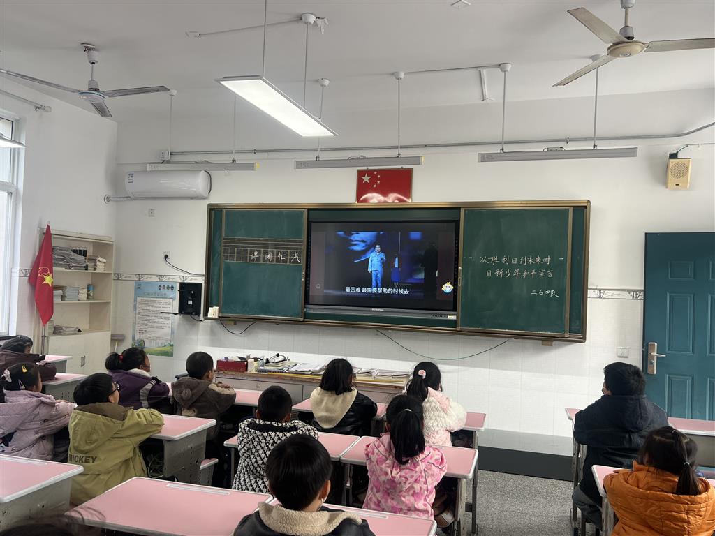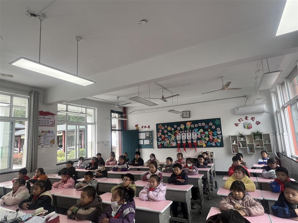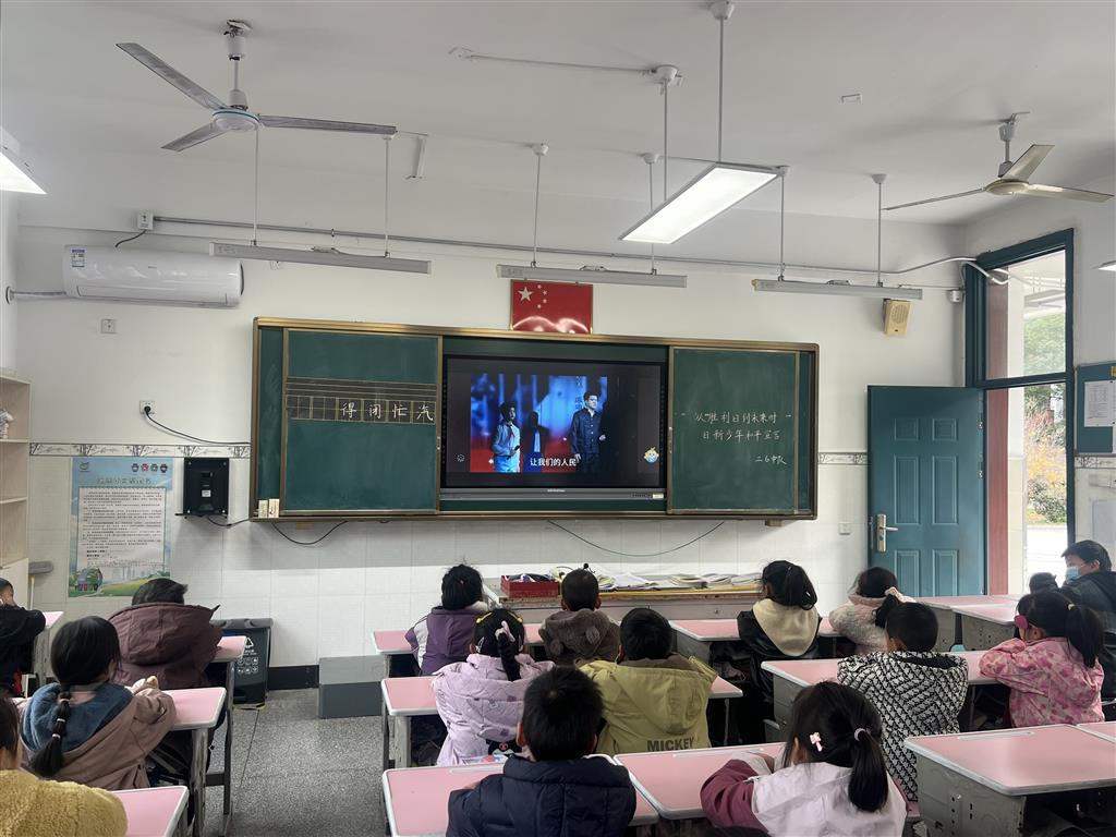 同学们在很认真观看《你是谁》情景剧。
