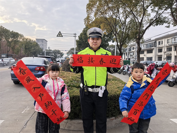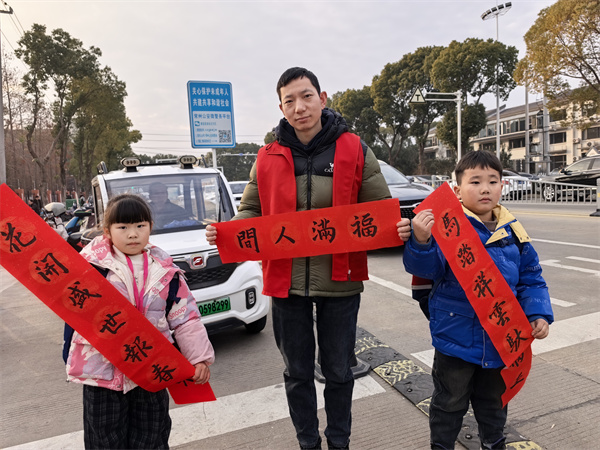寒冬送春暖,墨香暖人心。学生们将一幅幅春联送至保安、交警、家长志愿者、老师们手中,一件件精彩的春联作品在这寒冷的冬日彰显出喜气洋洋的气息。大家在领取春联的同时,也领略到了书法的魅力,个个喜笑颜开。纷纷表示,这是送到心坎里的新春祝福,给即将到来的新春佳节增添了浓浓的年味。
