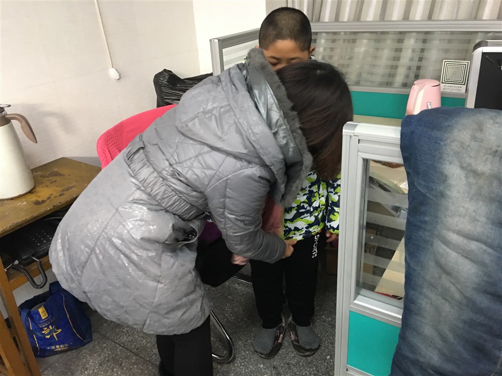 班主任邵英华老师和数学王蕾老师更是对他关爱有加。天冷了,王老师看到他还是穿得那么单薄,马上给他买来温暖的新棉袄;知道他去姑姑家要转乘多趟公交,就自己开车将他送到了位于郑陆的姑姑家。王老师给了他姐姐般的关心,邵老师更是给了他妈妈般的呵护。帮他洗澡、洗头,给他买新衣服、新袜子,每一件本该妈妈做的事,邵老师都亲力亲为。穿上新衣服的他看上去精神多了,还露出了久违的笑脸。无微不至的关怀也感动了小智博,他变得不再自卑、不再胆小怯懦,上课高举着的小手和充满自信的回答让老师也倍感欣慰。老师们还常常和他交流,鼓励他好好学习,争取通过自己的努力将来改变自己的命运。