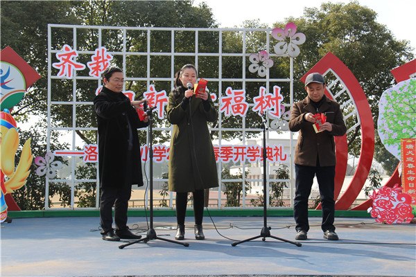学校彭新立、戴鸿、朱伟、朱轶倩副校长也给大家送上新年的一份甜蜜、一份幸运,祝同学们实现新年里美好心愿。学校戴鸿副校长宣布表彰决定,并为获得“日新星级中队”荣誉称号的师生代表颁发荣誉证书。幸福树下,队员们共同努力,新学期将创造更多、更美的幸福果实。