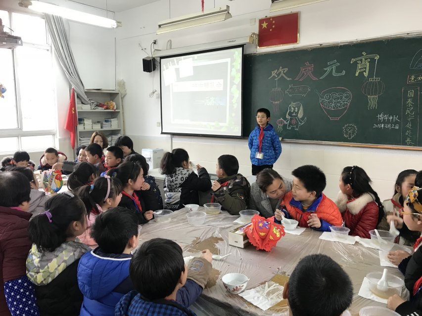 活动中,各班都有序地开展活动,从同学们绽开的笑脸中,我们分明感受到孩子们的快乐。本次活动,各班形式多样,效果明显。有的班级通过PPT的形式,学生演讲的方式,看元宵节视频了解元宵节的来历和习俗,这种方式更直观,更方便,学生也在活动中受益良多,更好地了解了元宵节;有的班级组织了猜灯谜的活动,只见整个教室贴满了灯谜,灯谜的内容也是精彩纷呈,同学们兴趣盎然,纷纷加入了猜灯谜的游戏。看,那个同学一蹦三尺高,顿时拍手叫道:“哈哈,我答对了,真是太简单了。”诺,另一边的同学愁眉苦脸,站在那里一动不动,估计灯谜有点难度,正绞尽脑汁地想着答案呢!猜灯谜活动更是让学生直接体验元宵节习俗,丰富了学生的业余生活:甚至有的班级还把家长请入了活动行列,家长们准备好各种工具带着学生搓汤圆,尝汤圆,一个个形态各异的汤圆吃在孩子嘴里,暖在大家心里,这种体验活动不仅提高了孩子们的动手能力,也让孩子们得到了极大的满足和幸福。