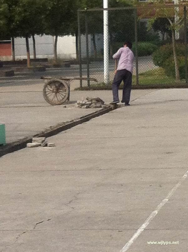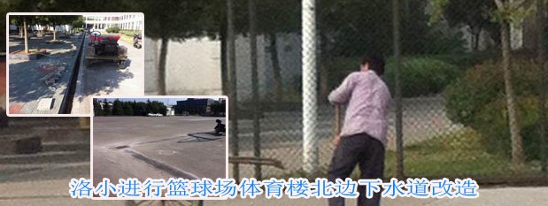 洛阳中心小学篮球场原有下水道约320米,为明沟铸铁盖板,由于热胀冷缩使下水道边缘破损,引起盖板与地面高低不平,另外,25辆校车每天在篮球场上出入,使盖板破损下陷。另外,体育楼北边明沟约150米,水泥盖板老化,破损较多。以上两处均给学生上操及上体育课带来严重的安全隐患。