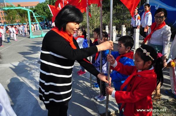 一面面红色旗帜迎风展映,神圣的入队仪式在全体少先队员充满朝气和活力的队歌声中拉开了帷幕。红色辉映着孩子们可爱的脸庞,音乐声中,五六年级老队员纷纷为新队员戴上了鲜艳的红领巾。当鲜艳的红领巾佩带在他们的胸前时,新队员的脸上都洋溢着激动自豪的微笑。新红领巾们在少先队中努力成长,少先队中将涌现更多的先锋榜样。学校领导戴鸿副校长为新成立的中队授中队旗,优秀少先队员代表还为新聘任的十二位中队辅导员戴上了鲜艳的红领巾。鲜红的领巾在胸前飘扬,星星和火炬在队旗上闪光。少先队组织就是幸福的大家庭,今天,学校的大家庭里又多了12个新中队,大家将张开怀抱欢迎他们。