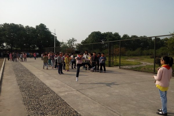 一、内容多 如,跳短绳、小皮球、往返跑、跳方格、立定跳远、小足球等十几种。跳方格等活动,让我们大人回忆起了儿时的乐趣,在大课间活动期间,有的老师也自愿加入学生的行列,与学生玩成一片,可开心啦!加油声、拍手声,不时传入我们的耳中!