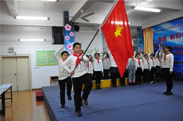2:00整,活动在嘹亮的队歌声中拉开了帷幕。本次活动课分四板块进行。首先是探讨 “爱国是什么”通过观看街头采访,说感想,队员们越来越清晰地懂得在和平时代做好自己的本职工作就是爱国的一种表现。接下来是第二板块:爱国,他们在行动。队员们分别了解了农民、教师、警察、司机、工人等不同职业的人的爱国行为,观看新闻评论、诗朗诵加深了队员们的认识。第三板块是:爱国,就在我们身边。队员们说起了自己身边的爱国者。一个个鲜活的事例,更让队员们看到了爱国并不是那么遥远的事。各行各业的劳动者,尽自己最大的努力,为建设祖国作着贡献,这就是爱国。第四板块是:爱国,我们在行动。队员们从学校的升旗手入手,探讨了少先队员可以怎样爱国。活动在铿锵的《歌唱祖国》的大合唱中结束了。辅导员向队员提出了开展核心价值观的后继活动的要求。整节队活动课从问题开始,层层深入,探讨了爱国的含义及行为,让所有参加本次观摩课的辅导员、队员、家长都受到了一次深刻的爱国主义教育。