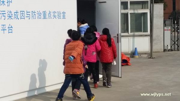 12点40分,环境监测站的陶博士准时出现在了大家的面前。他简单介绍了他们的工作以后,就分批带领学生进入监测站开始了参观活动。他耐心地向学生介绍了监测站里的各种仪器及其功能,不厌其烦地回答了同学们一个一个感兴趣的问题。不知不觉中,一堂课的时间就结束了。