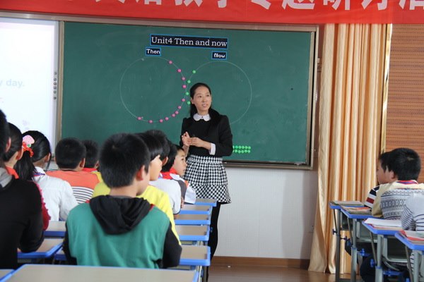 夏亚南老师执教的是六年级上册Unit4 Then and now。夏老师充分展示了一个老教师的风采,内容十分扎实有效。课中每一部分的设计都很巧妙,将checkout time 和sound time有机结合,过渡自然,降低了教学的难度,提高了学生的自主学习能力。