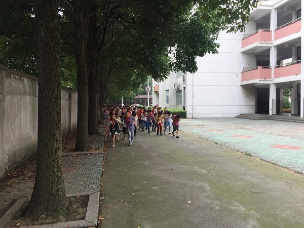 少队课一开始,班主任就带领孩子们熟悉应急避灾的正确方法,分析我校应急避灾的环境条件,阐述火灾应急演练的重要意义,讲明演练的程序、内容和纪律要求,以及各个班级疏散的路线和到达的区域,同时强调演练是预防性、模拟性练习,并非真正的地震应急和疏散,以免发生误解而引发慌乱。听到疏散第一次信号后,上课教师立即停止授课,告知学生“火灾来了,不要慌”,并指挥学生迅速捂鼻准备撤离;听到疏散第一次信号后,教师们带领学生有序撤离教室,进入紧急疏散演练环节,其他各负责老师迅速到岗,协助学生快速、有序地撤离,各班按照预定的疏散路线,排着队伍迅速撤离到安全集合地点。整个过程师生都能做到有序、快速。